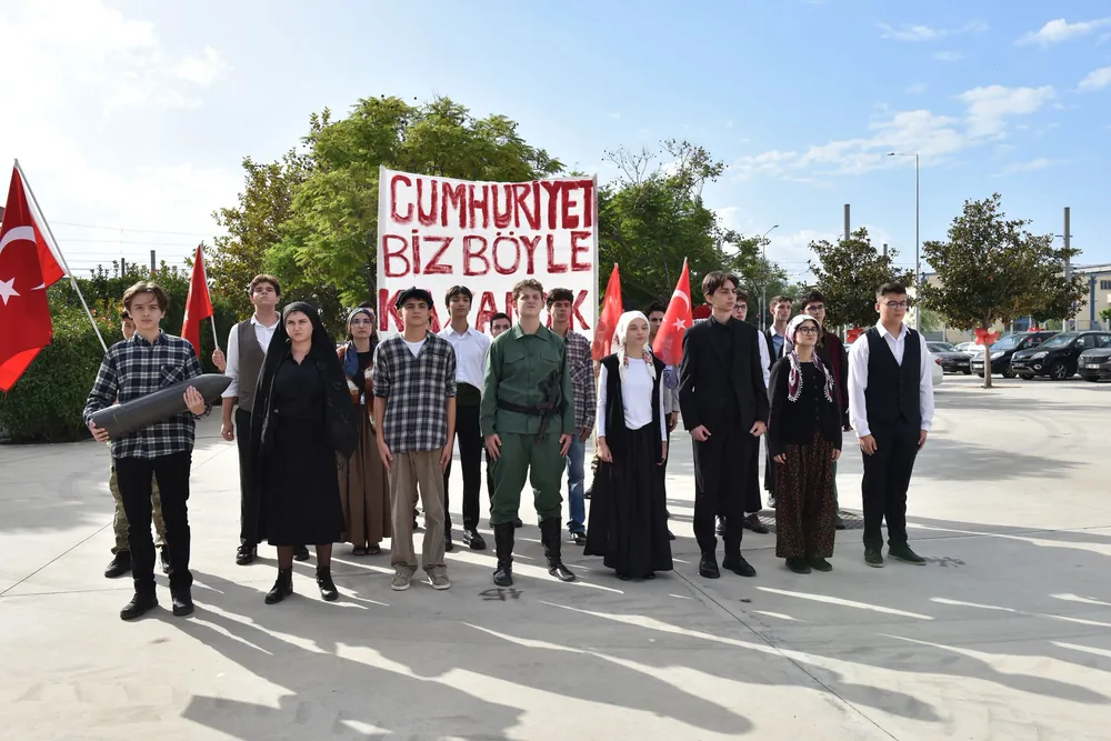 Kadınlar Kulübü’nün öncülüğünde gerçekleşen programda öğrencilerin hazırladığı “Cumhuriyeti Biz Böyle Kazandık” adlı oratoryo izleyenlere duygu dolu anlar yaşattı. Gösteride, Kurtuluş Savaşı yıllarına ve Halide Edip, Nene Hatun, Kara Fatma gibi Cumhuriyet tarihinin kahraman kadın figürlerine yapılan göndermeler büyük beğeni topladı.
