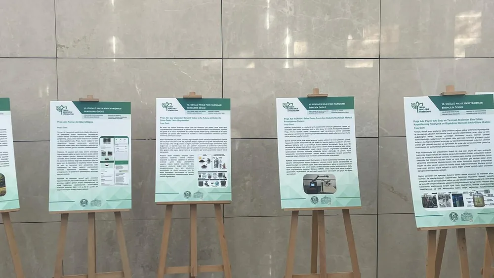 “Tarım Gençlerle Yükseliyor” Proje Fikir Yarışması kapsamında yapılan değerlendirme sonucunda dereceye giren ve sergilenmeye hak kazanan proje fikirleri de belli oldu. Birincilik ödülü, Çevre Dostu Tarım kategorisinde Tarık Yıldız’ın “Peynir Altı Suyu ve Tarımsal Atıklardan Elde Edilen Kapsüllenmiş Probiyotik ve Biyokömür Destekli Akıllı Gübre Üretimi” konulu proje fikrine verildi. İkincilik ödülü, Çevre Dostu Tarım kategorisinde Ali Kayra Kocatürk’ün “Agrion – İklim Dostu Tarım İçin Robotik Morfolojik Mahsul Fenotipleme Sistemi” başlıklı proje fikrinin oldu. Üçüncülük ödülü ise yine Çevre Dostu Tarım kategorisinde Buse Yıldız’ın “Bıo-Condenser” adlı proje fikrine layık görüldü.