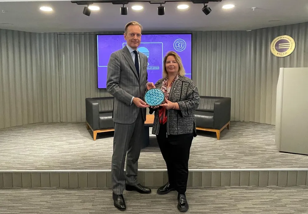 Etkinlik öncesinde ESİAD’ı ziyaret eden Büyükelçi Van de Velde, ESİAD Yönetim Kurulu Başkanı Sibel Zorlu ile bir araya geldi. Van de Velde’ye ziyaretinde Belçika’nın İzmir Fahri Konsolosu Perihan İnci ve Belçika’nın ticaret ataşeleri eşlik etti .ESİAD Başkanı Zorlu, Gümrük Birliği’nin güncellenmesinin ve vize serbestisinin ikili ilişkilerde öncelikli başlıklar olduğunu ifade etti.