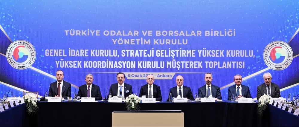 Türkiye Odalar ve Borsalar Birliği (TOBB) Yönetim Kurulu, TOBB Genel İdare Kurulu, TOBB Strateji Geliştirme Yüksek Kurulu, TOBB Yüksek Koordinasyon Kurulu Müşterek toplantısını, TOBB Başkanı Rifat Hisarcıklıoğlu ev sahipliğinde, Hazine ve Maliye Bakanı Mehmet Şimşek'in katılımıyla gerçekleştirdi.
